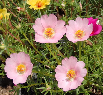 「マツバボタン」開花しています 炎天下でも とても元気に開花するので 暑さにはとても強いですね 写真をクリックすると拡大します! ナスの収穫!!···