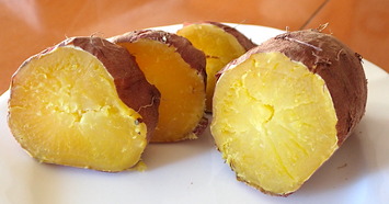 「焼き芋」ができました!! (写真をクリックすると美味しい焼き芋が!) 昨秋 収穫した「サツマイモ」を焼き芋にした! 電子レンジとトースターの併···