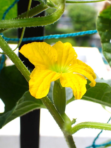 「お盆きゅうり」が開花始め!! お盆に種蒔きしたものに 赤ちゃんきゅうりが 見えて来たので期待しております!! うまく収穫できれば なんとなく嬉···