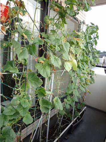 緑のカーテンのマクワウリたち!!「ニラ」を収穫!