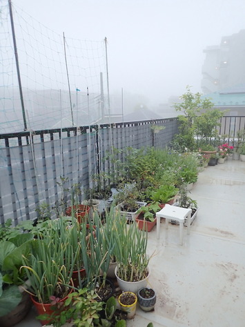 濃い霧が発生!「ロメインレタス」「グランドペチカ」「キャベツ」「カリフラワー」「四葉···
