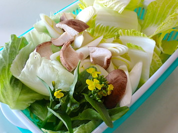 白菜の菜花!スナップエンドウのサヤがついて来た!「ニラ」の新芽が伸びる!