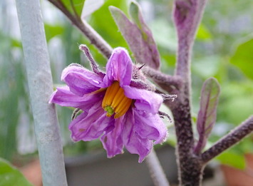 「真黒茄子」1番花が咲いた! 毎年栽培している固定種のナスです 今季もやっと1番花が咲きました プランターで2株だけ栽培中です 写真をクリックする···