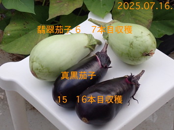 ナス2品種収穫! 友達にお裾分けをしたいのでと妻から収穫の リクエストがありました 「真黒茄子」15 16本目収穫! 「翡翠茄子」6本 7本目収穫···