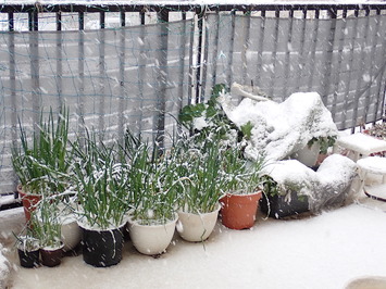 雪が降った東京です!区民農園の様子!スナップエンドウの開花!春菊の収穫!タネ生姜の確保!