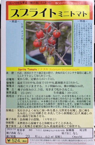 「スプライトミニトマト」に興味あり! ブログ友の農園1回生さんから情報をいただき 固定種の種子を扱う野口種苗さんから購入しました プランター栽培···