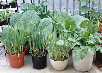 白菜の菜花!スナップエンドウのサヤがついて来た!「ニラ」の新芽が伸びる!
