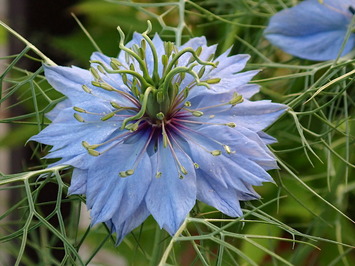 ニゲラ「ペルシャンブルー」が開花しました 昨秋に種蒔きしてずっと待っていました 初めて栽培しています 写真をクリックで拡大して見てください と···